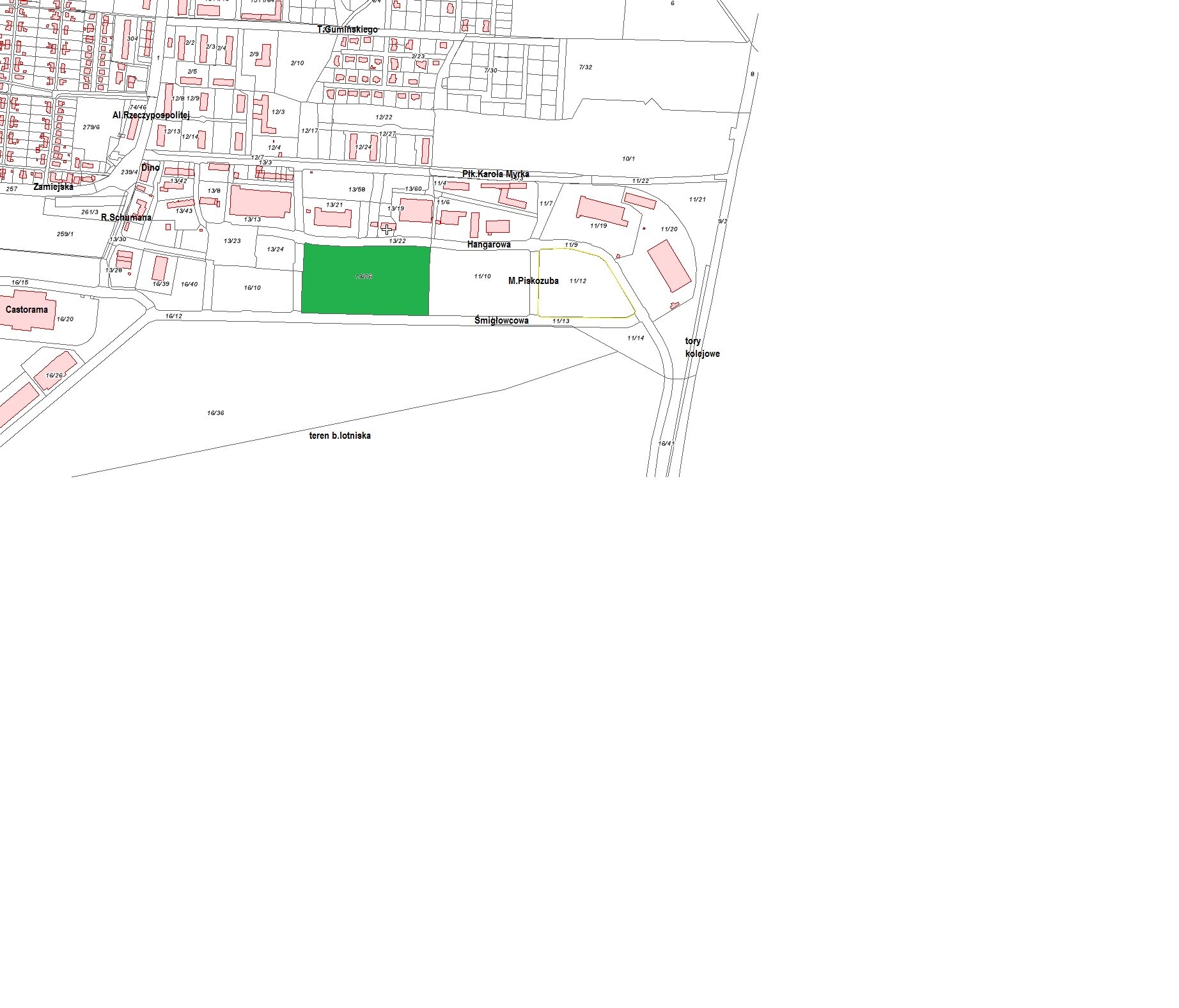 Opis nieruchomości: Nieruchomość zlokalizowana jest w północnej części lotniska, w odległości około 700 m na wschód od Alei Rzeczypospolitej. W bezpośrednim sąsiedztwie nieruchomości znajdują się grunty użytkowane do celów magazynowo ? składowych. Obiekty handlowo ? usługowe zgrupowane są w zachodniej części lotniska, w odległości około 600 m od nieruchomości, tworząc lokalne centrum usług. W północnej, zabudowanej części lotniska powstały magazyny firm handlowych i kurierskich. Po północnej stronie ul. Myrka obiekty pokoszarowe zaadaptowano na cele mieszkalne, tworząc małe osiedle mieszkaniowe. Teren działki płaski i równy, porośnięty trawą. Od północy graniczy z ul. Hangarową, a od południa z nawierzchnią asfaltową na działce nr 16/12 obręb Bartoszów. Dojazd do działki zapewnia ul. Hangarowa, która ma nawierzchnię asfaltową. Na działce znajdują się fragmenty nawierzchni betonowych związane z poprzednią funkcją tego terenu (lotnisko) oraz niezidentyfikowane urządzenia techniczne.